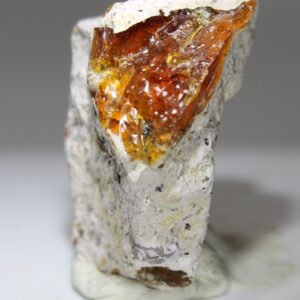 Eine sehr schöne Micromount-Stufe mit der Opal-Varietät Feueropal. Aufgrund der hellen Matrix kommen die feurigen Farbeffekte sehr schön zur Geltung. Der genaue Fundort ist die Carbonera Mine, La Trinidad, Gemeinde Tequisquiapan, Queretaro, Mexiko. Die Maße der Stufe sind 2,5×2,5×1,5 cm und das Gewicht ist 7,4 g.